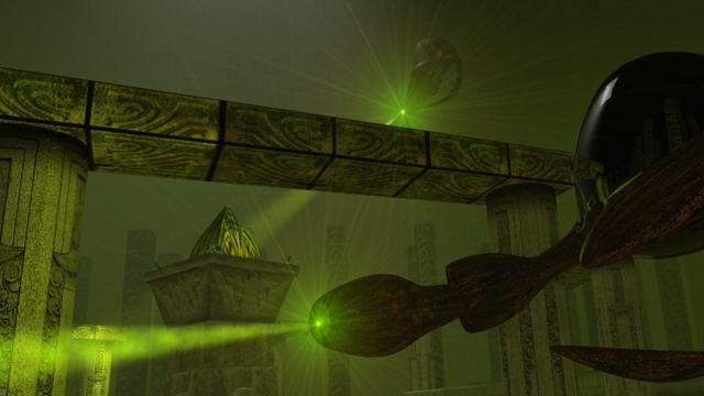 "Stop there Terran Space Vessel! We are the coalition of 3 races that make up the G'Nunk Empire of the Starflight 2 Imperium. We are passing thru your galaxy and laugh at your pathetic civilization. Hah! Hah! Beep! Growl! We will trade you a Shield Nullifier A or B if you prove yourselves in combat with us. Its quality will depend on how well you fight us. We will try to be nice and not kill so many of your people. Beep Beep! Groooooowl! Hah Hah Hah! What do you say to our offer?"
